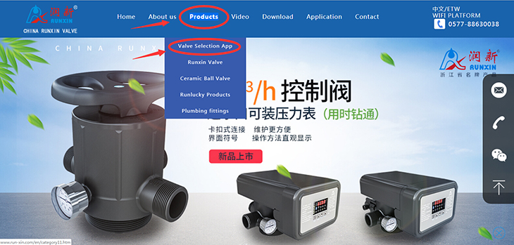 "Runxin Valve" has been exported to 121 countries and regions around the world, and has a large user group worldwide. Recently, in order to allow foreign users to enjoy the convenience of the selection system, Runxin successfully launched the "Runxin Valve" selection system (English version) on the Runxin English official website. The system can automatically select control valve model that meet the requirements based on the filer material, water treatment capacity and flow rate, and it also can view the specific functions and parameters of the suggested control valve.